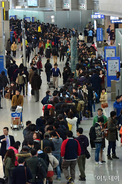 사흘간의 연휴를 앞둔 28일 인천국제공항 출국장이 휴가를 즐기기 위해 수속을 밟는 여행객들로 장사진을 이루고 있다.