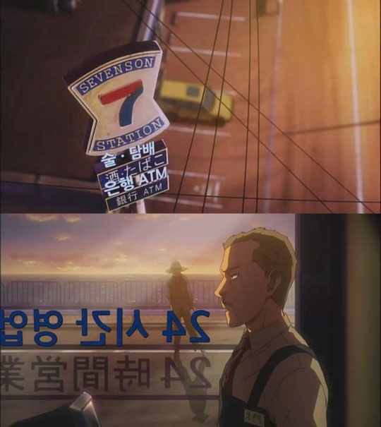 사진을 보면 일반적으로 자막이 대사만 처리하는 것에 비해 이 애니메이션에는 영상 속 등장하는 표지판까지 번역했다.