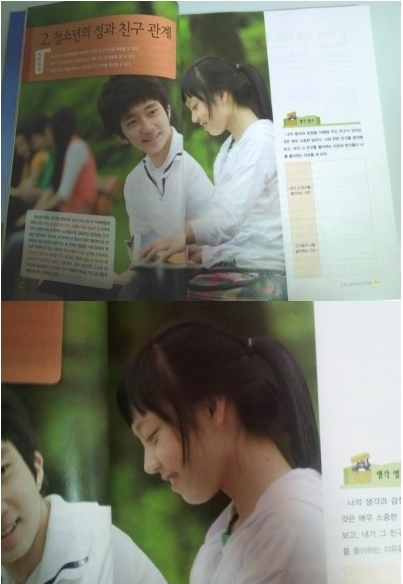 한편 이 공개된 사진은 2010년도 기술가정 교과서의 ‘청소년의 성과 친구관계’라는 단원의 표지로 알려졌다.