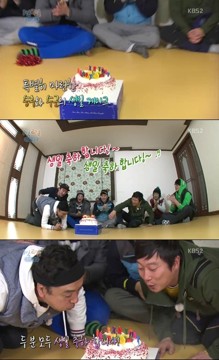'해피선데이-1박2일' 제작진이 김승우와 이수근의 생일을 축하했다.