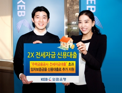 외환은행은 부족한 전세자금으로 고민하는 고객들을 대상으로 주택금융공사 전세자금대출 금액 초과 임차보증금에 대해 추가 지원하는 2X전세자금 신용대출을 4일부터 판매한다.