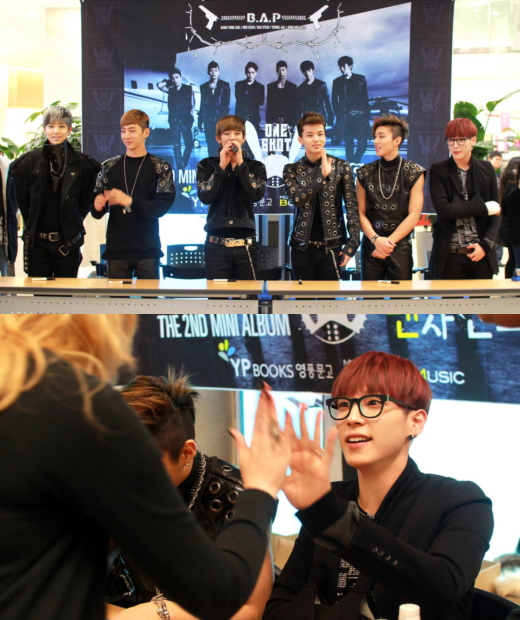 B.A.P는 3일 오후 7시 서울 강서구에 위치한 영풍문고 김포공항점에서 두 번째 미니앨범 '원샷(ONE SHOT)'의 발매를 기념한 팬사인회를 열었다.