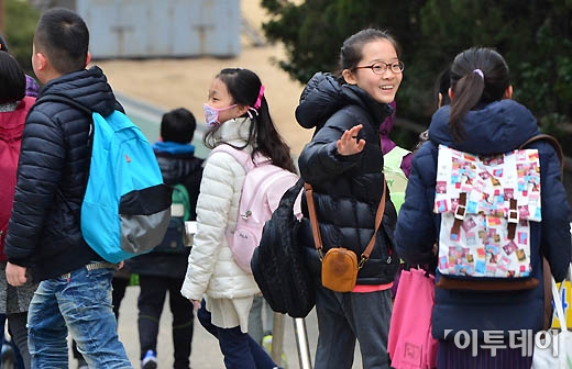 전국 대부분 초·중·고교가 개학 및 입학을 맞이한 4일 서울 서대문구 미동초등학교에서 아이들이 등굣길에 오르고 있다.
