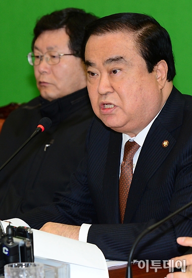 문희상 민주통합당 비상대책위원장이 4일 오전 국회 당대표실에서 열린 비상대책위원회의에 참석해 모두발언을 하고 있다. 노진환 기자 myfixer@
