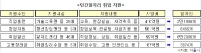 또 민간일자리는 직업훈련·창업지원·취업알선·고용장려금 지원을 통해 지난해보다 14.7% 늘어난 11만5152개를 만든다.