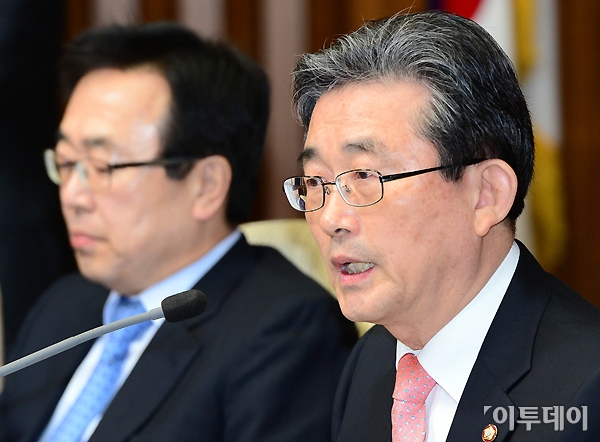 이한구 새누리당 원내대표가 5일 오전 국회에서 열린 확대원내대책회의에 참석해 모두발언을 하고 있다. 노진환 기자 myfixer@