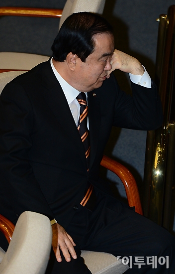 정부조직법 개정안을 두고 여야 간 협상이 난항을 겪고 있는 5일 오후 문희상 민주통합당 비대위원장이 국회 본회의장에서 깊은 고민에 잠겨있다. 노진환 기자 myfixer@