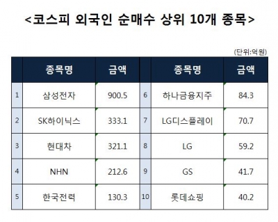 [코스피 외국인 순매수 상위 10개 종목]
