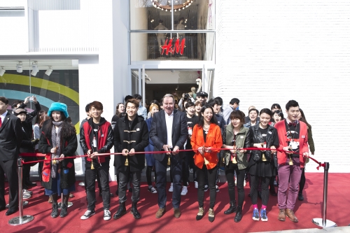 오픈일에는 한스 안데르손 H&M코리아 지사장과 박잎새 홍대점 점장, H&M 홍대점 직원들이 함께 리본 커팅을 하며 문화예술의 중심지인 홍대지역 고객들을 맞았다.