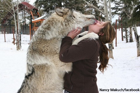 이 사진은 미국 '콜로라도 늑대 및 야생 동물 센터'에서 자원봉사자와 늑대의 만남을 촬영한 것으로 알려졌다.