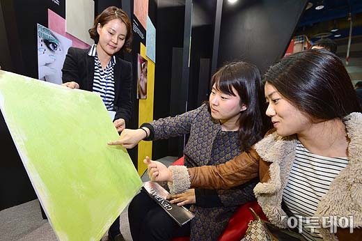 ‘2013 DIY&리폼 박람회’가 6일 오전 서울 강남구 삼성동 코엑스에서 열린 가운데 박람회를 찾은 관람객들이 친환경 페인트를 직접 만져보는 체험을 하고 있다. 오는 9일까지 열리는 DIY&리폼 박람회는 작게쓰고 빌려쓰고 직접 만들어 사용하는 3대 신(新)소비문화 트랜드를 반영하여 알뜰소비문화 확산을 위해 기획되었다. 방인권기자 bink7119@