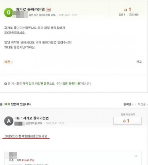 게시물에서 한 네티즌은 "과거로 돌아가는 법 있나요? 제가 제일 행복할 때가 2009년이라서요"라고 질문했다.