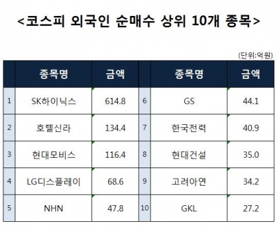 [코스피 외국인 순매수 상위 10개 종목]