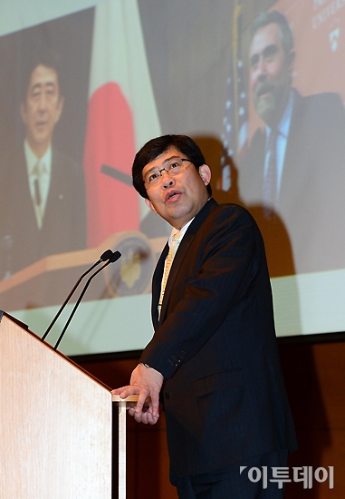 윤창현 한국금융연구원장이 8일 오전 남대문로 대한상공회의소에서 열린 조찬간담회에 참석해 ‘최근 금융시장 동향과 한국경제’를 주제로 강연하고 있다. 노진환 기자 myfixer@