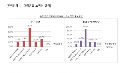 조사 결과, 전문 외주업체를 이용하는 비율이 52.1%로 절반이 넘는 것으로 나타났다. 기업들은 홈페이지 관리 전담인력을 대부분(87.9%) 보유하고 있음에도 운영 관리에 큰 어려움을 느끼고 있는 것. 특히, 사내 홈페이지 전담인력이 마케팅·홍보담당자로 구성된 기업의 외주업체 이용률은 72.4%로 늘어났다.