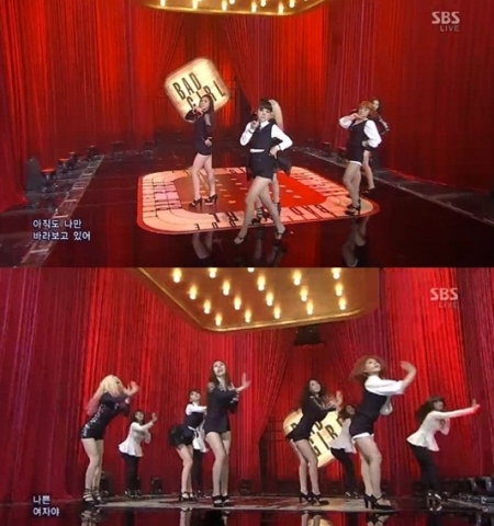 레이디스 코드는 10일 생방송으로 진행된 SBS ‘인기가요’에 출연해 블랙과 화이트가 조화된 심플한 의상을 입고 ‘나쁜여자’란 노래 제목에 맞게 치명적인 매력을 발산하며 무대를 채웠다.