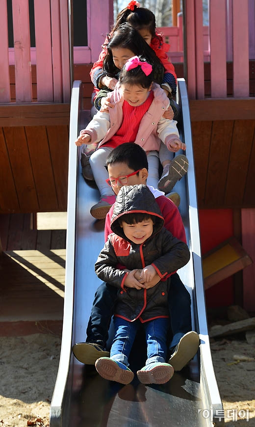 10일 서울 능동 어린이대공원을 찾은 어린이들이 미끄럼틀을 타며 신나게 놀고 있다.