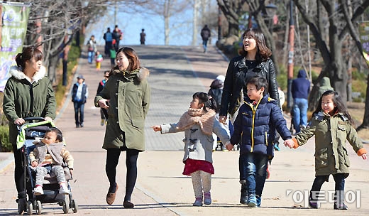 10일 서울 능동 어린이대공원을 찾은 시민들이 봄볕을 만끽하며 산책을 즐기고 있다.