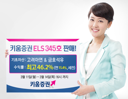 만기까지 상환되지 않았을 경우에도 발행 후 두 기초자산의 만기평가가격이 최초기준가격대비 55% 미만으로 하락한 적이 없는 경우(종가기준) 46.2%(연 수익률 15.4%)의 수익을 지급한다. 모집금액은 100억원이며 최소 가입금액은 100만원이다. 키움증권 홈페이지에서 가입할 수 있다.