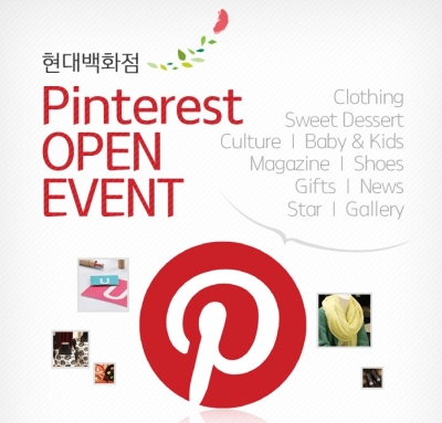 현대백화점은 SNS인 ‘핀터레스트(http://pinterest.com/hyundaidept/)’를 오픈한다고 12일 밝혔다. 기존 SNS와 달리 사진과 그래픽 등 이미지를 중심으로 정보를 공유하는 소셜 네트워크 서비스다.