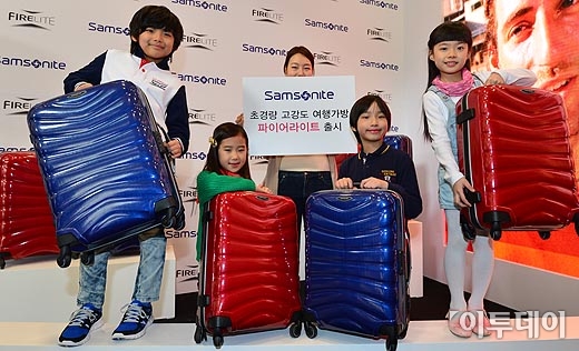 세계적인 라이프스타일 브랜드 쌤소나이트가 12일 오전 서울 롯데백화점 본점 앞에서 초경량 고강도 여행 가방 '파이어라이트'를 선보이고 있다. 이번에 출시된 신제품 '파이어라이트'는 신소재인 커브소재를 활용해 혁신적으로 무게를 줄이고 외형의 변화에도 깨지거나 변형되지 않는 뛰어난 원상회복능력이 특징이다. 방인권기자 bink7119@