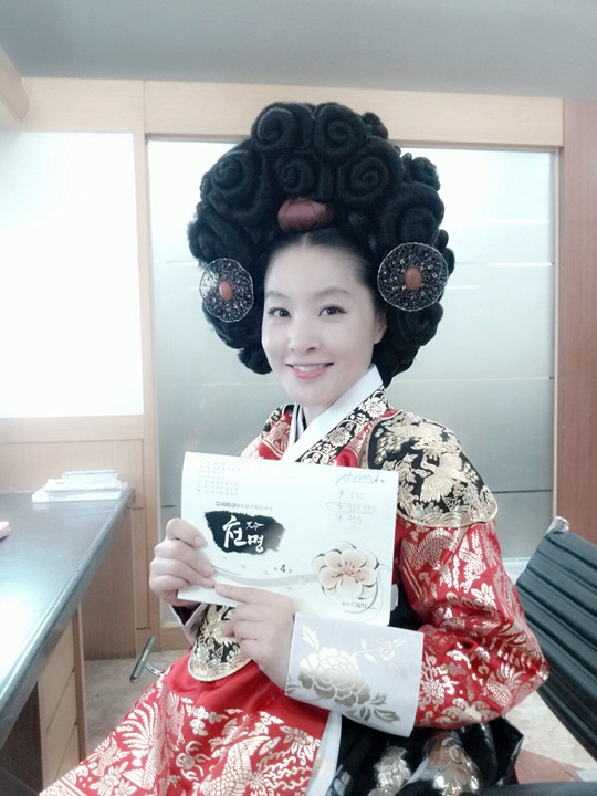 KBS2 새 수목드라마 ‘천명’에서 문정왕후 역할을 맡은 박지영은 최근 사진 한 장을 공개했다. 소속사 프레인TPC가 제공한 사진에서 그는 왕후의 복장을 차려입은 채 대본을 들고 미소짓고 있다.