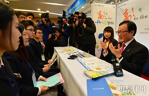 [포토]고교생들에게 취업 상담해주는 이순우 행장