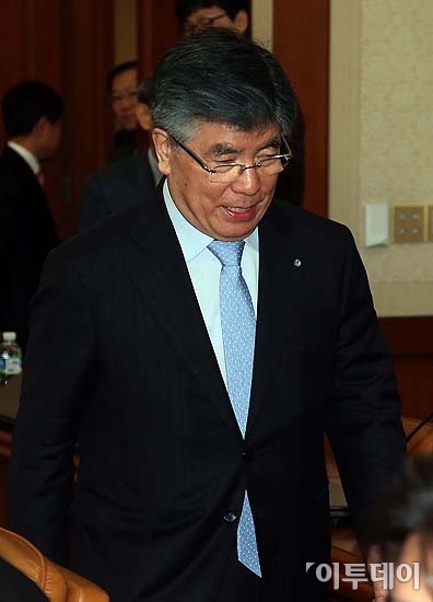 김중수 한국은행 총재가 14일 오전 서울 중구 한국은행 본점에서 열린 3월 금융통화위원회 전체회의에 참석하고 있다. 방인권기자 bink7119@