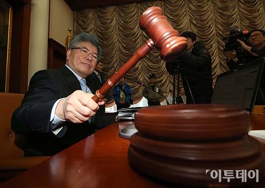 김중수 한국은행 총재가 14일 오전 서울 중구 남대문로 한국은행 본점에서 열린 '3월 금융통화위원회 전체회의'에서 의사봉을 두드리고 있다. 방인권기자 bink7119@