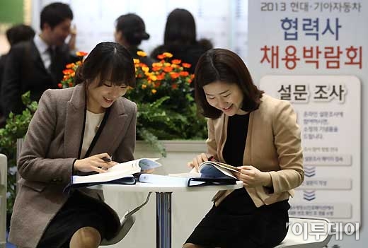 '2013 현대·기아자동차 협력사 채용박람회'가 14일 서울 삼성동 코엑스에서 열렸다. 많은 구직자 및 관계자들이 행사장에 몰려 있다.