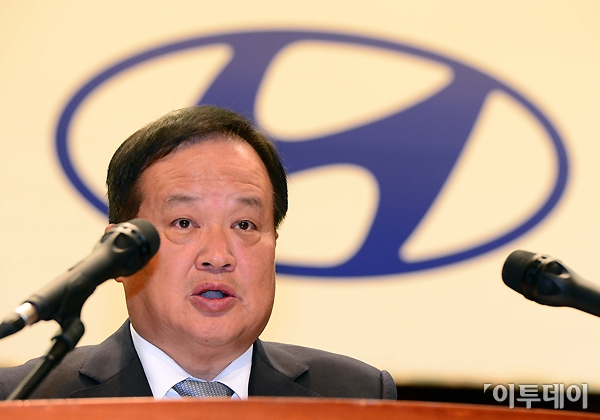 김충호 현대자동차 대표이사 사장이 15일 오전 서울 서초구 양재동 현대기아차 본사에서 열린 현대자동차 제45기 정기주주총회에서 의장인사를 하고 있다. 노진환 기자 myfixer@