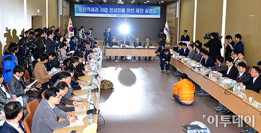 '단국 이래 최대 규모'라 불리던 용산국제업무지구개발사업이 채무불이행(디폴트) 상태에 빠진 가운데 15일 오후 서울 중구 봉래동 코레일 서울본부에서 열린 ‘용산역세권 사업 정상화를 위한 제안 설명회’가 열리고 있다. 방인권기자 bink7119@