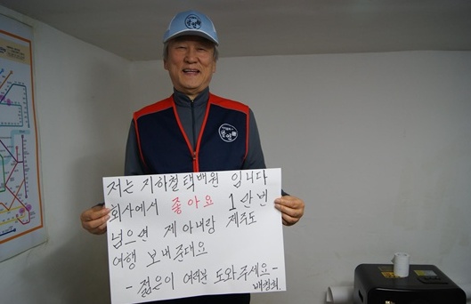 지난 12일 페이스북에는 사당동에서 지하철 택배일을 하는 배창희 할아버지의 사진이 올라왔다.