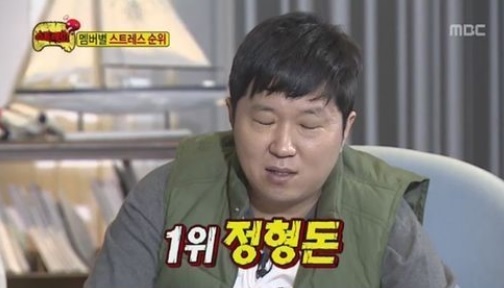 검사 결과 스트레스가 가장 많은 멤버는 정형돈이었다. 정형돈은 고용에 대한 불안감과 뾰족한 것에 대해서도 불안감을 느끼는 것으로 조사됐다. 상담을 진행한 전문가는 “놓과 도중 발을 동동거리는 모습은 내면의 불안과 스트레스를 보여주는 것”이라고 말했다.