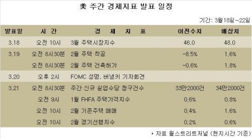 뉴욕증시는 이번주(3월18일~22일)에 미국 연방준비제도(연준, Fed)의 연방공개시장위원회(FOMC) 회의가 증시 등락을 좌우할 전망이다.