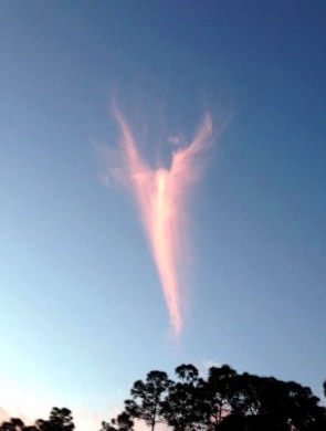 최근 미 플로리다 지역방송 WPTV의 페이스북 페이지에는 웨스트 팜 비치에서 촬영된 '천사 구름' 사진이 여러장 게재됐다. 사진 속에는 천사가 날개를 펼치고 있는 듯한 형상을 띈 구름 모습이 담겨져 있다.