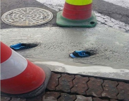 공개된 사진 속에는 운동화 한 켤레가 시멘트 바닥에 굳어있어 마치 신데렐라의 발자국을 연상시킨다.