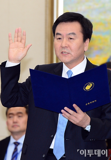 신제윤 금융위원장 후보자가 18일 오전 국회 정무위원회에서 열린 인사청문회에 참석해 선서를 하고 있다. 노진환 기자 myfixer@