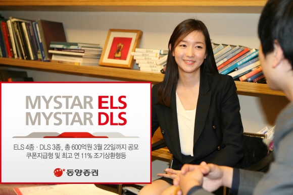 동양증권은 오는 3월22일(금)까지 나흘간 원금비보장형 ELS 4종 및 원금비보장형 DLS 3종 등 총 7종의 ELS, DLS 상품을 600억원 규모로 공모한다.