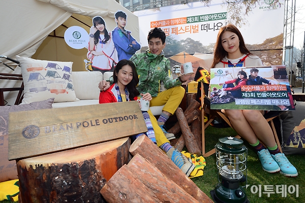제일모직의 아웃도어 브랜드 ‘빈폴아웃도어’가 19일 오전 서울 청계광장 앞에서 ‘제3회 빈폴아웃도어 글램핑 페스티벌’을 알리는 홍보행사를 진행하고 있다. ‘제3회 빈폴아웃도어 글램핑 페스티벌’은 5월 17일부터 19일까지 2박 3일간 강원도 평창 알펜시아 리조트에서 열린다. 노진환 기자 myfixer@