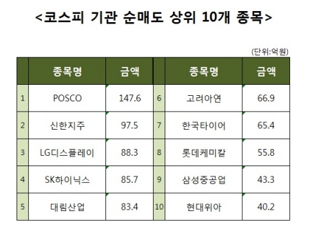 [코스피 기관 순매도 상위 10개 종목]