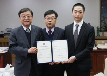 ▲왼쪽부터 서울대 오연천 총장, 유족 이옥형·이재진씨(사진=연합뉴스)