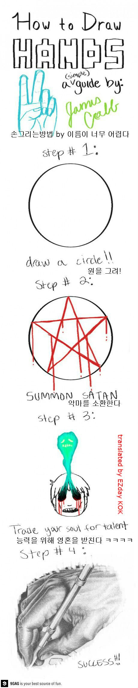 이 게시물은 우선 원을 그리고 악마를 소환해 영혼과 능력을 바꾼 후 그리면 성공이라고 설명하고 있다.