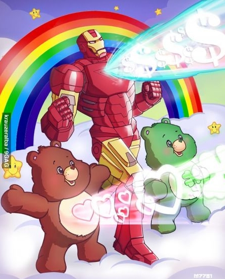 최근 인터넷 게시판에는 ‘아이언맨 아동버전’이라는 사진이 올라왔다. 아이언맨과 갈색곰, 초록곰이 가슴에서 광선을 뿜고 있는 장면이다.