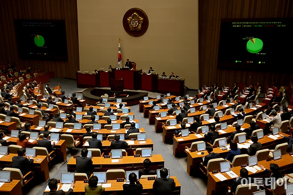 여야가 막판 진통 끝에 정부조직법 개정안 등과 관련, 최종협상을 전격 타결한 가운데 22일 오후 여의도 국회 본회의가 열리고 있다. 이날 여야는 본회의를 통해 정부조직법 개편과 관련된 40여개의 법안을 일괄 처리할 예정이다. 노진환 기자 myfixer@