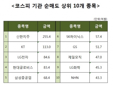 [코스피 기관 순매도 상위 10개 종목]