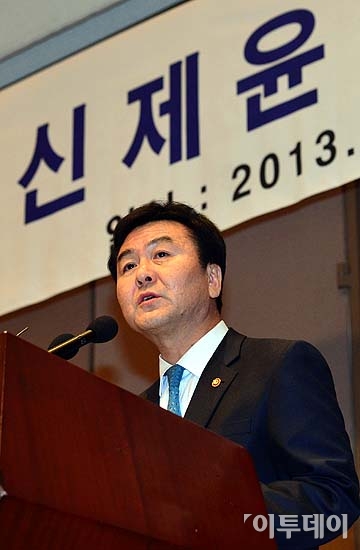 신제윤 금융위원장이 22일 오후 서울 중구 프레스센터에서 열린 취임식에서 취임사를 하고 있다. 방인권 기자 bink7119@