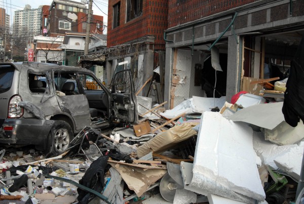 또 사고가 난 건물 주변의 일부 주택가와 자동차 10여 대의 유리창이 파손되는 등 피해가 있었다.