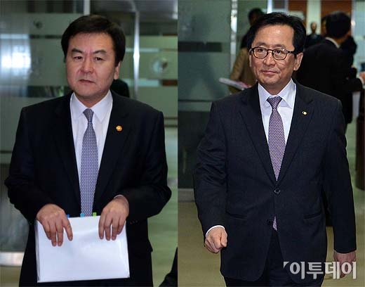 신제윤 금융위원장과 최수현 금융감독원장이 25일 오전 서울 중구 태평로 프레스센터에서 열린 ‘금융상황점검회의'에 참석하고 있다. 방인권 기자 bink7119@