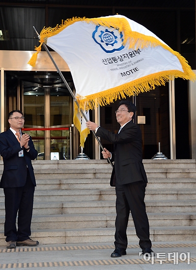 [포토]산업통상자원부 부기 흔드는 윤상직 장관